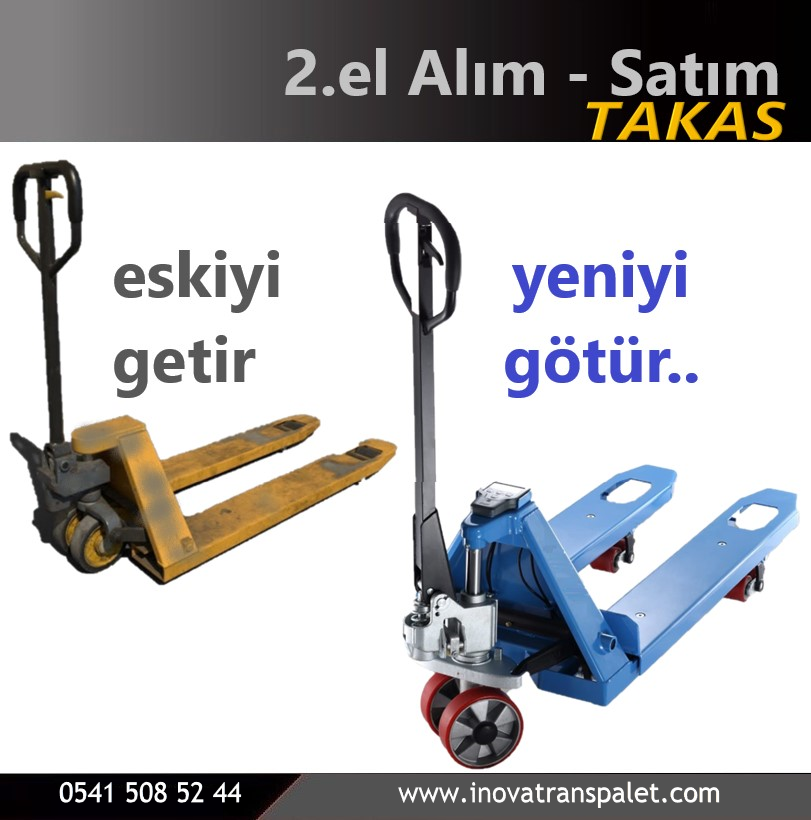 Gel sıfırdan farksız A dan Z ye yenilenmiş , bütçe dostu , ikinci el transpaletlerimize bi bak. Elinde eski transpalet varsa onu da takasa sayalım , maliyetini düşürelim.